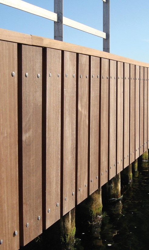 Hårdtræ i sorten Azobe er desuden yderst holdbart. Og så har træet fra naturens side den særlige egenskab, at det ikke bliver angrebet af pæleorme under vand.