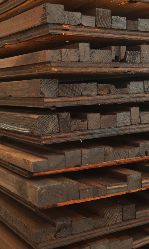 Træ som ellers ville være blevet kasseret – og som blandt andet kommer fra udskiftning af vinduer i Sydhavnen, gamle gulvbrædder fra Gladsaxe Almennyttige Boligselskab samt rammetræ fra fyldningsdøre og udtjente stilladsbrædder.