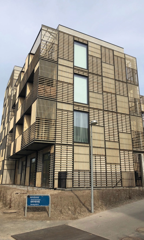 Udover de æstetiske værdier i brugen af træ, er det også en langtidsholdbar løsning grundet træets modificering. Samtidig er det også en løsning, hvor lamellerne er med til at filtrere solen, hvilket både giver lys ind i lejligheden samtidig med den beskytter selvsamme mod at blive alt for varme.